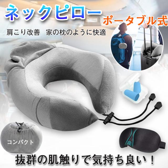 Amazon ネックピロー U型 首枕 携帯まくら 安眠 人気 低反発素材 洗えるカバー 多機能 男女兼用 お持ち運び便利 旅行用品 快眠グッズ 耳栓 アイマスク贈り 収納ポーチ付き 旅行用 飛行機内 トラベルバス 自宅 オフィスなどたくさん場合に使用可能 グレー 携帯枕